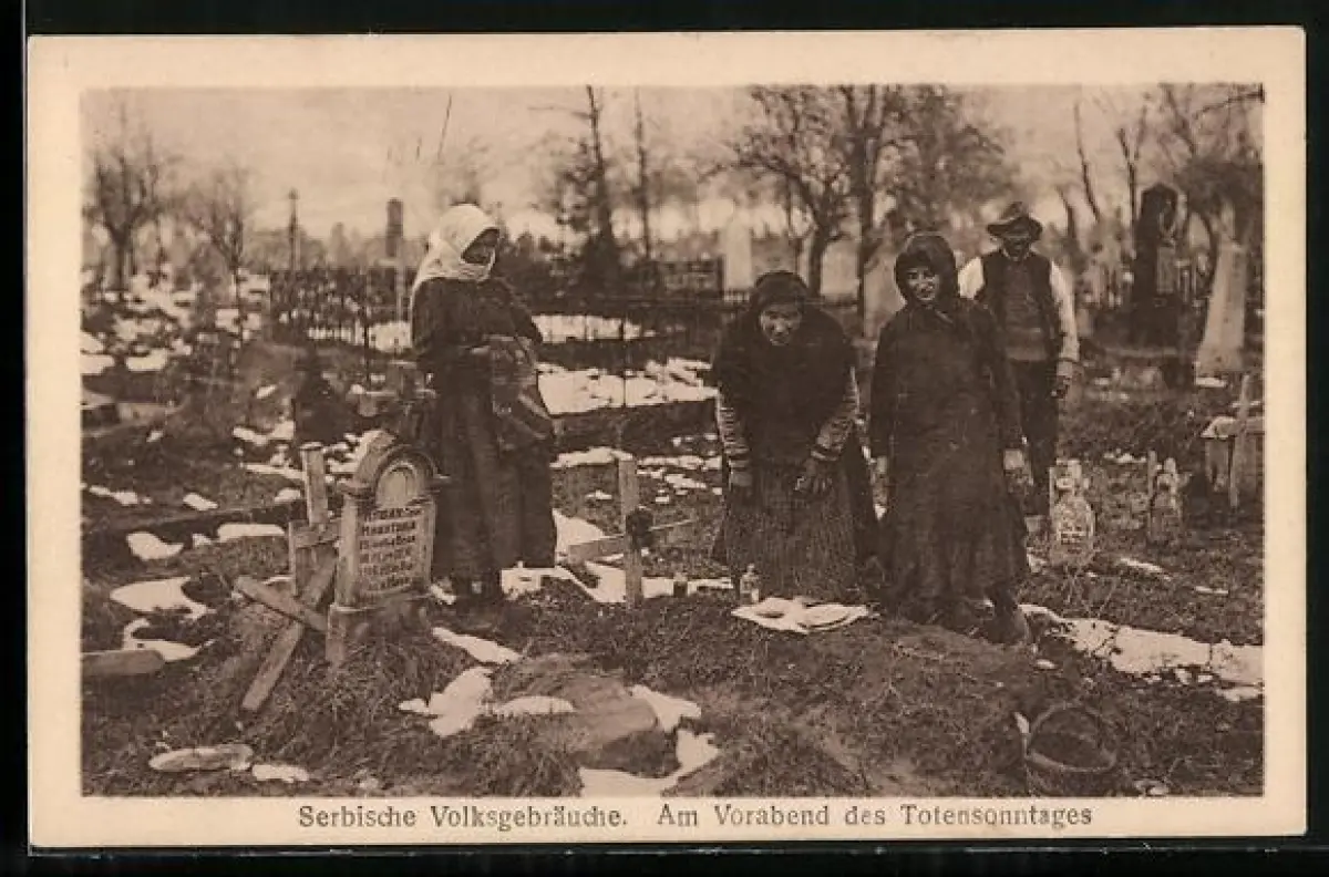 AK Serbien, Serbische Volksgebräuche, Am Vorabend des Totensonntages