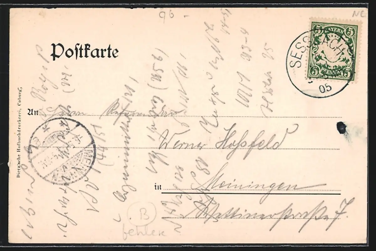 alte Ansichtskarte, gelaufen 1905, Eckknick re. oben, Stempelspur, kl. Oberflächenschaden li. oben, guter Zustand