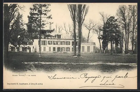 AK Sévran, La Mairie entourée d`arbres majestueux