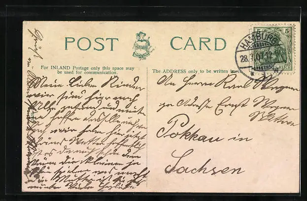 alte Ansichtskarte, gelaufen 1907, Abriebspur oben re., guter Zustand