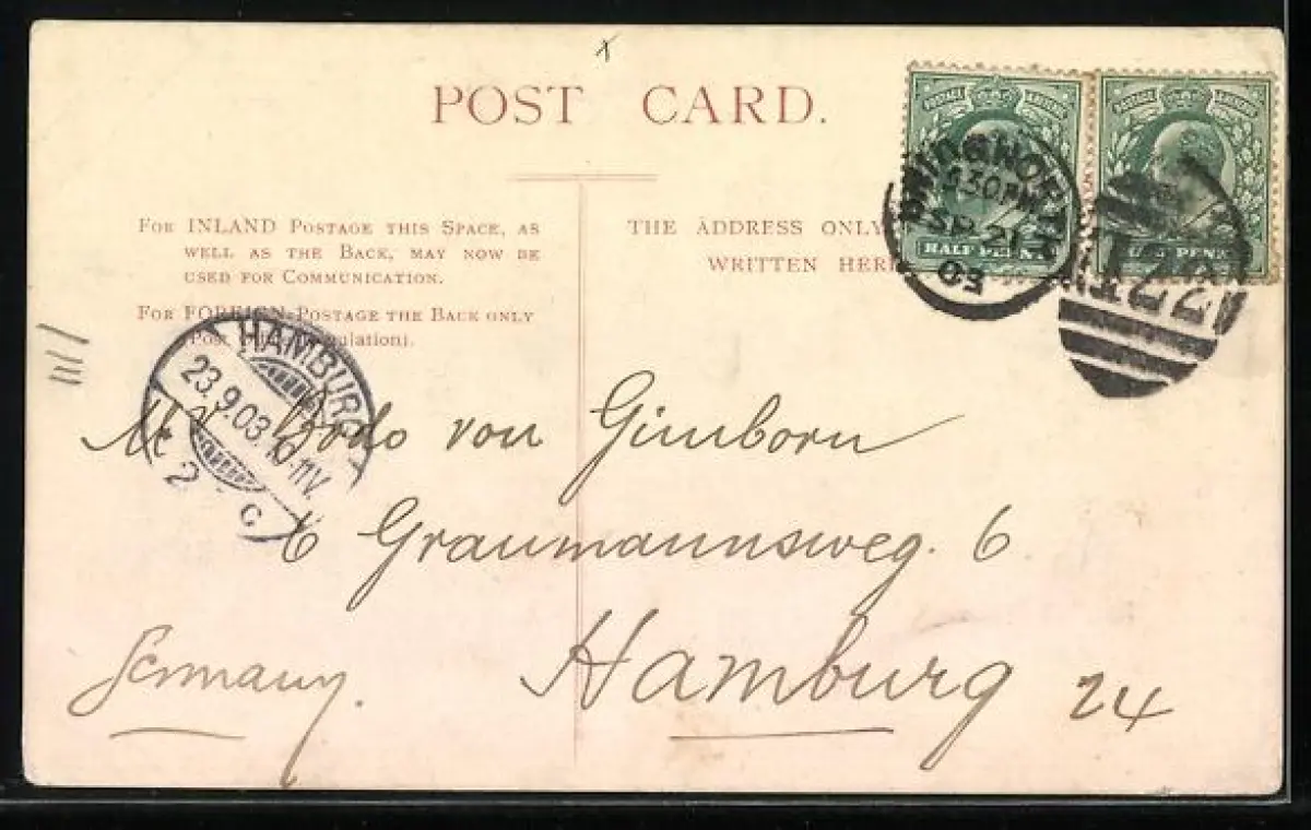 gelaufen 1903, Eckknicke links oben und rechts unten, guter Zustand