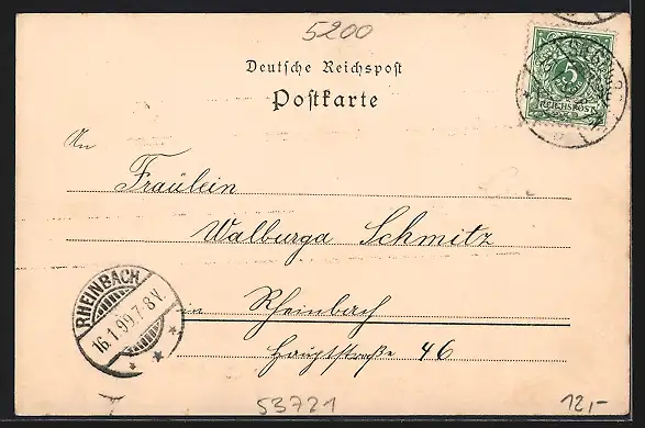 alte Ansichtskarte, gelaufen 1899, guter Zustand