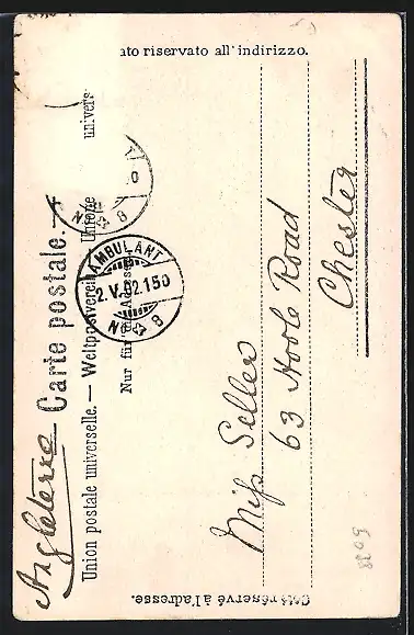 alte Ansichtskarte, gelaufen, Briefmarke entfernt, rückseitig Oberflächenschaden, guter Zustand