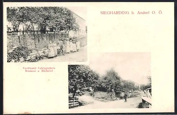 AK Sigharting b. Andorf, Ferdinand Kalchgrubers Binderei und Bäckerei