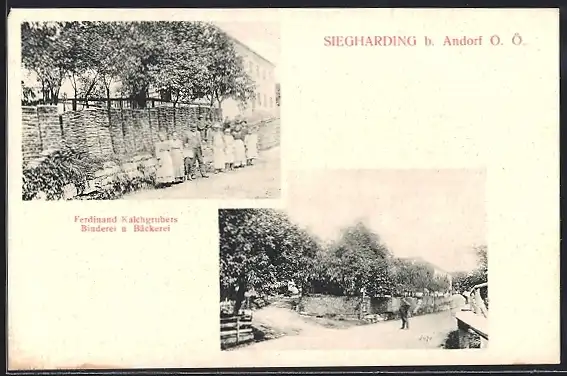AK Sigharting b. Andorf, Ferdinand Kalchgrubers Binderei und Bäckerei