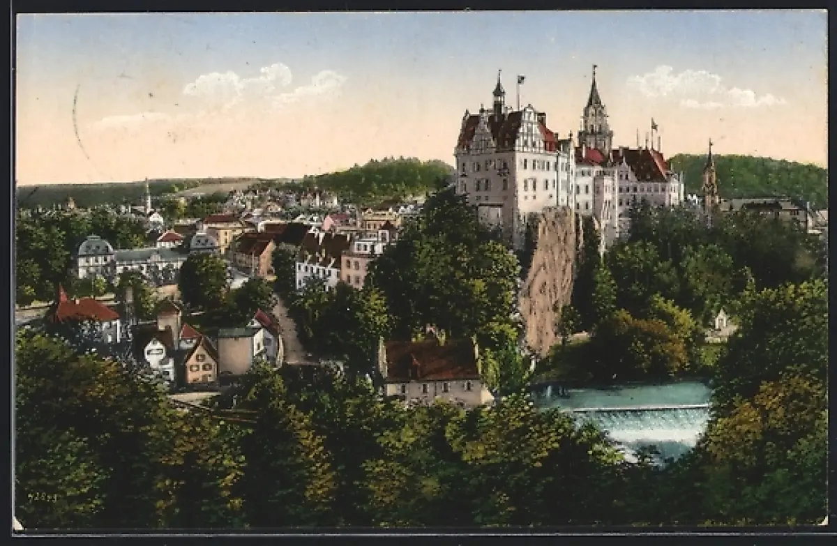 AK Sigmaringen, Schloss Sigmaringen und Stadtansicht