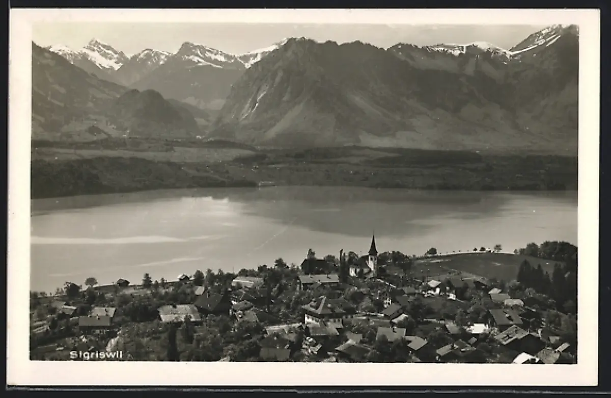 AK Sigriswil, Ortspanorama mit Bergen
