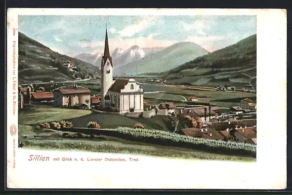 AK Sillian, Ortsansicht mit Blick n. d. Lienzer Dolomiten