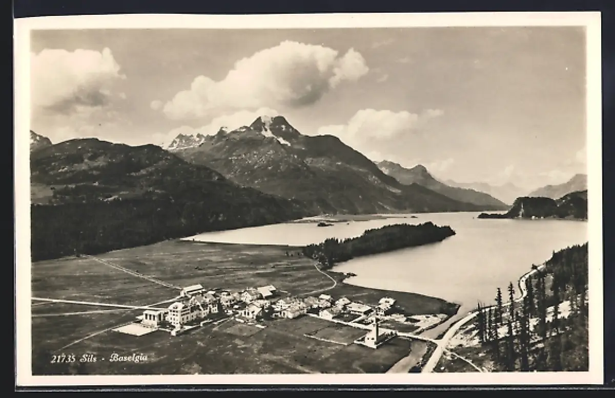 AK Sils-Baselgia, Blick aus der Vogelschau auf den Ort