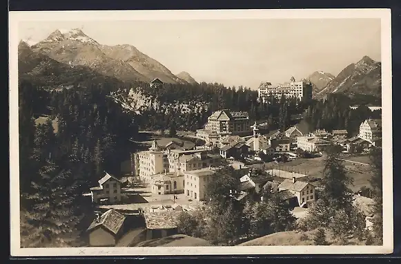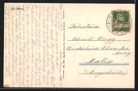 AK Sils-Maria, Totalansicht mit Bergpanorama