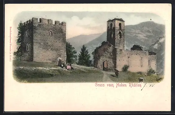 AK Sils im Domleschg, Hohen Rhätien, Ruine mit Panorama