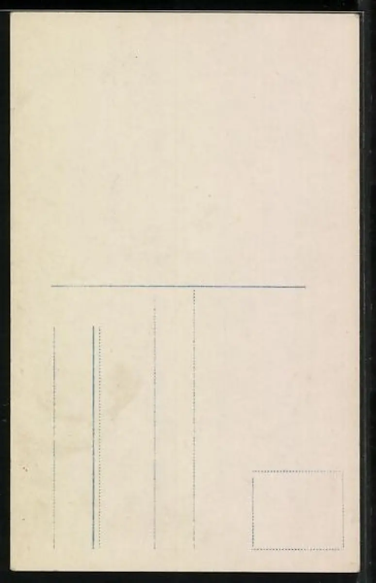 Personenbezogene Daten auf der Rückseite der Karte wurden durch blauen Textmarker unkenntlich gemacht. Die blauen Stellen sind auf die Vorderseite durchgeweicht und wirken sich negativ auf das Postkartenfoto aus