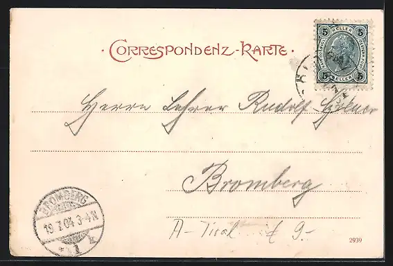 alte Ansichtskarte, gelaufen 1904, Stempelspur, Eckknick unten li., guter Zustand