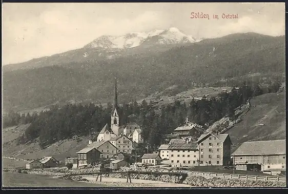AK Sölden im Oetztal, Ortsansicht mit Kirche