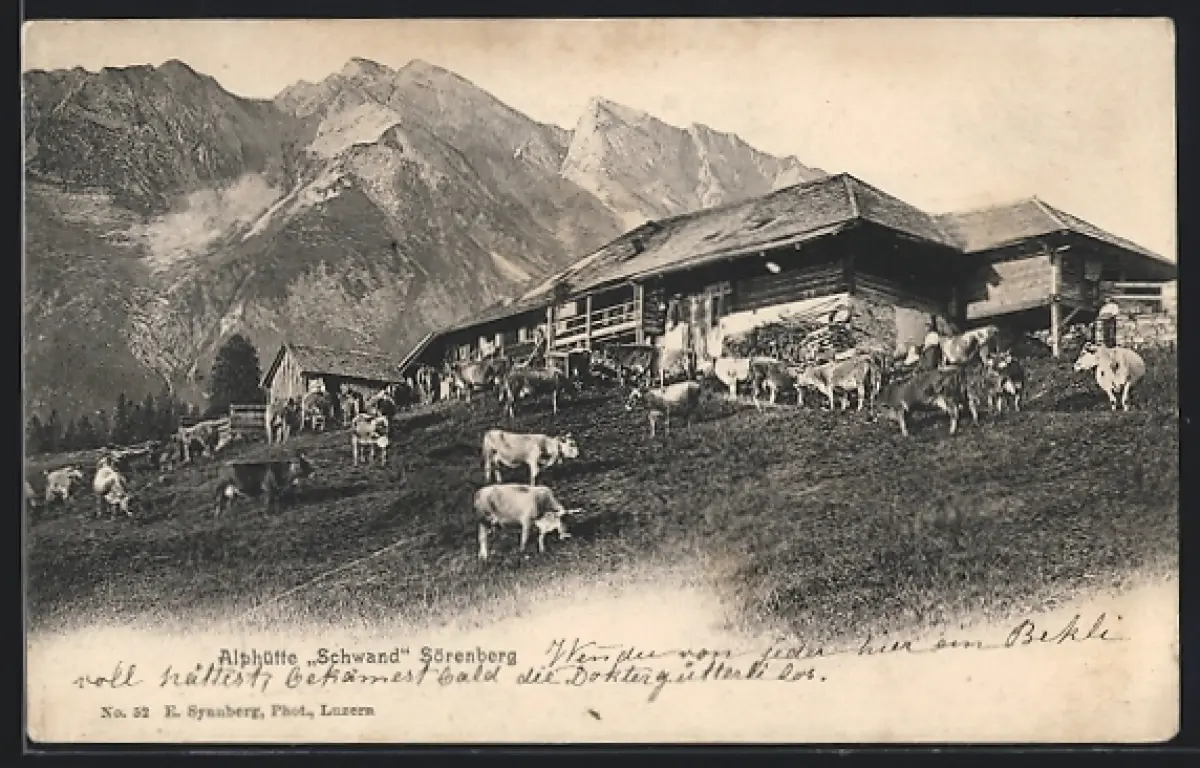 AK Sörenberg, Gasthof Alphütte Schwand mit Kühen