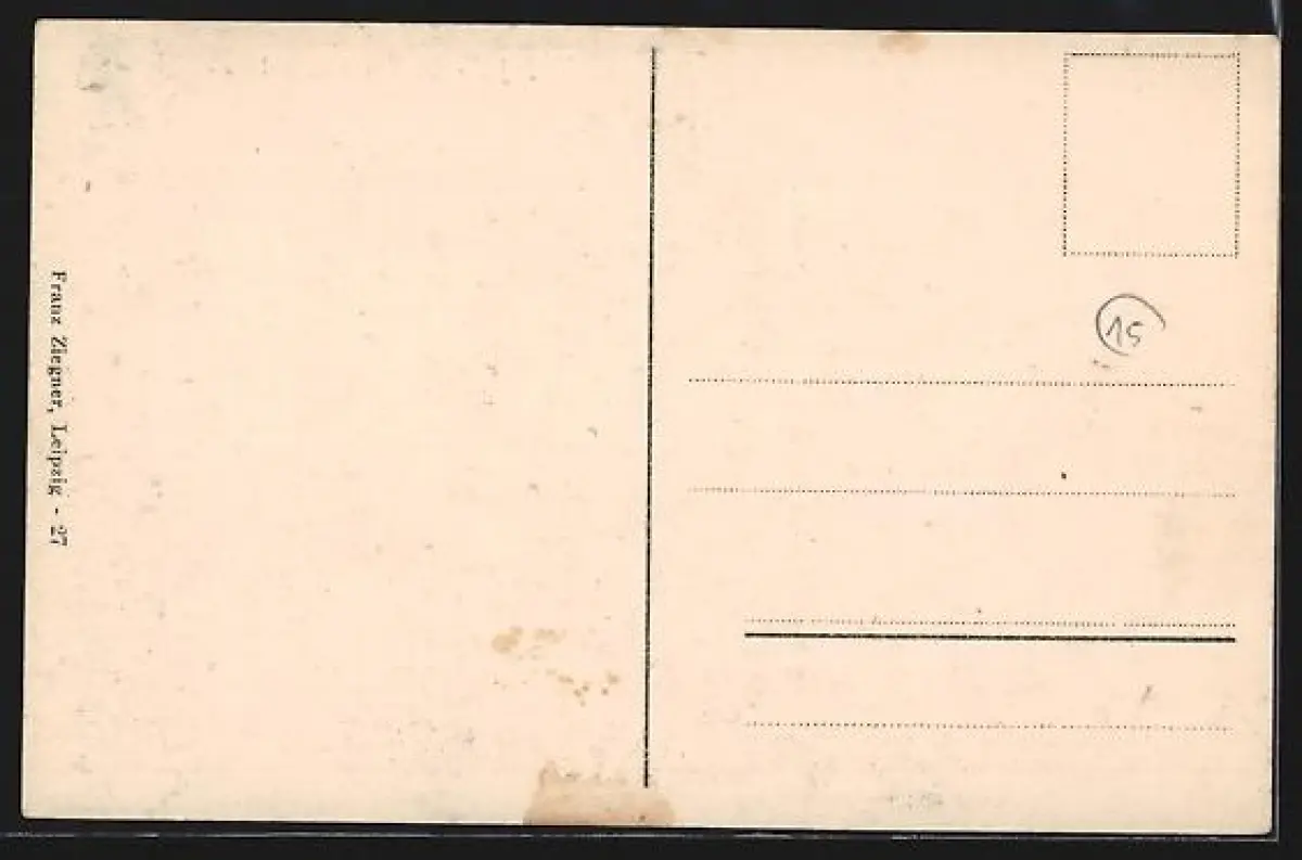 Personenbezogene Daten auf der Rückseite der Karte wurden durch blauen Textmarker unkenntlich gemacht. Die blauen Stellen sind auf die Vorderseite durchgeweicht und wirken sich negativ auf das Postkartenfoto aus