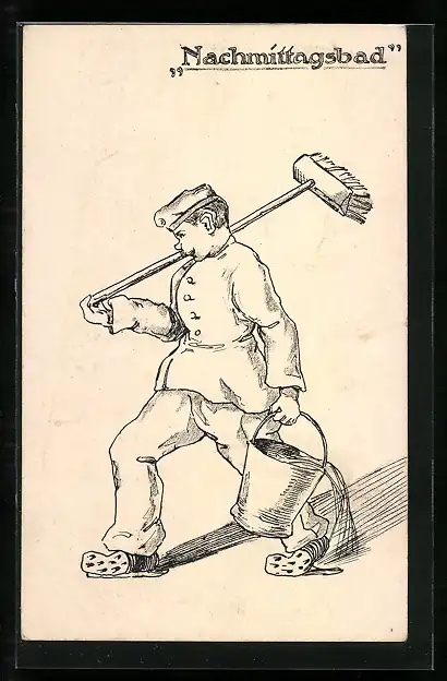 AK Soldat in Uniform mit Eimer und Schrubber, 1. Weltkrieg