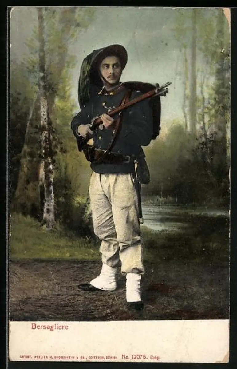AK Soldat in Uniform mit Waffe, Bersagliere