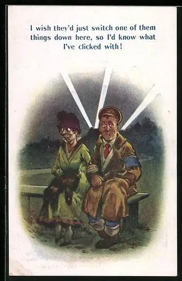 AK Soldat sitzt nachts mit Frau auf Bank, Scherz