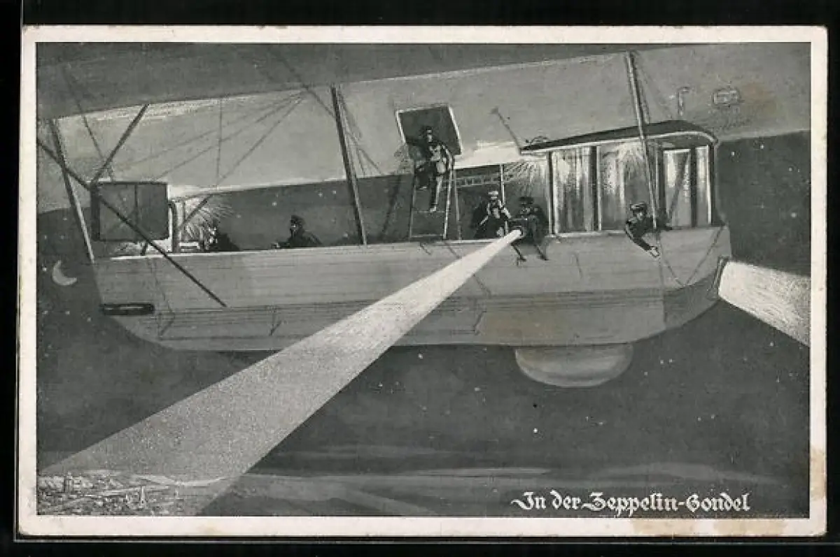 AK Soldaten am Scheinwerfer in der Gondel eines Zeppelins
