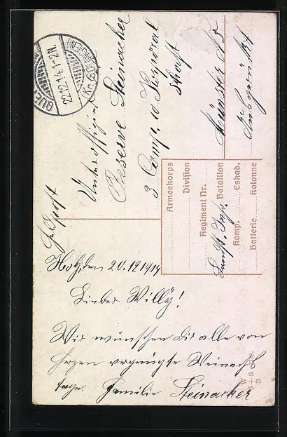 gelaufen 1914, Eckknicke re. oben und li. unten, guter Zustand