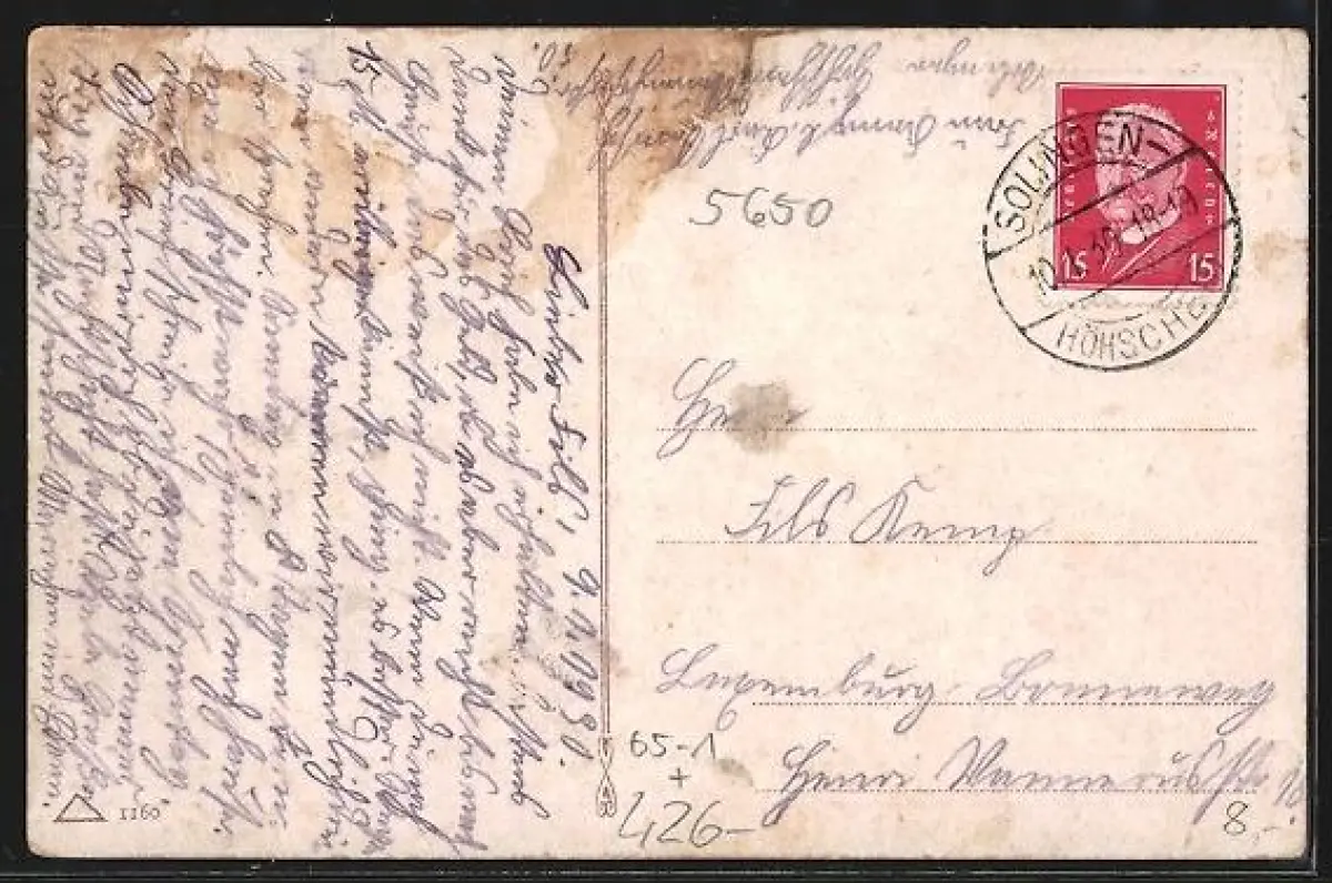alte Ansichtskarte, gelaufen, Abriebspur oben rechts, guter Zustand