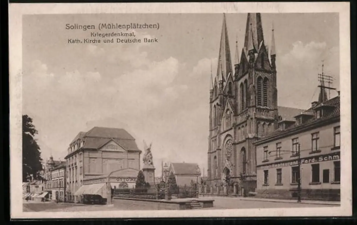 AK Solingen, Kriegerdenkmal, Kath. Kirche, Deutsche Bank