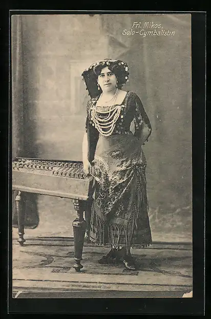 AK Solo-Cymbalistin Frl. Mikas, Portrait mit Instrument