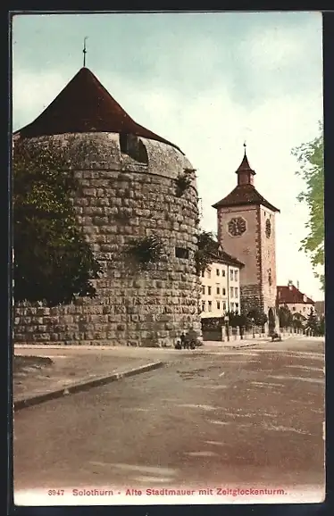 AK Solothurn, Alte Stadtmauer mit Zeitglockenturm