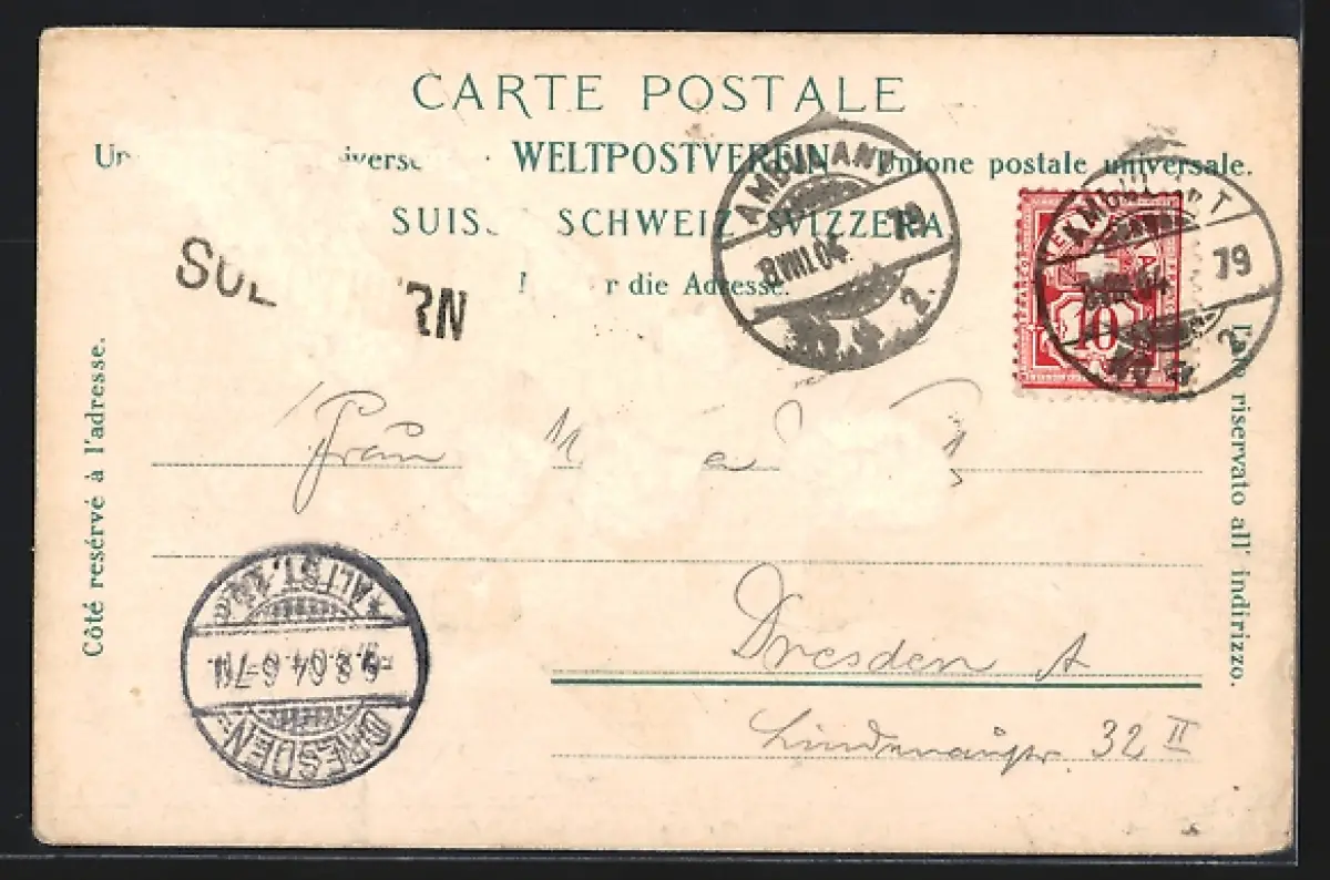 gelaufen 1904, rückseitig Oberflächenschaden, guter Zustand