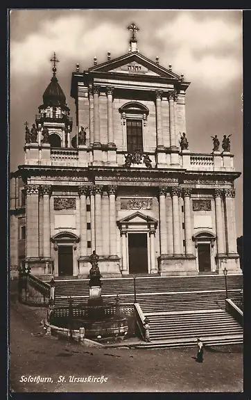 AK Solothurn, St. Ursuskirche mit Brunnen