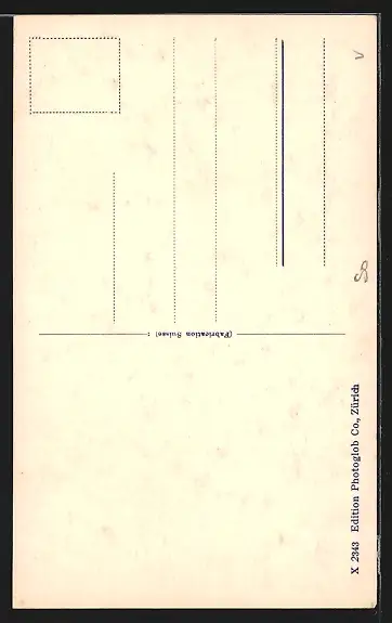Personenbezogene Daten auf der Rückseite der Karte wurden durch blauen Textmarker unkenntlich gemacht. Die blauen Stellen sind auf die Vorderseite durchgeweicht und wirken sich negativ auf das Postkartenfoto aus