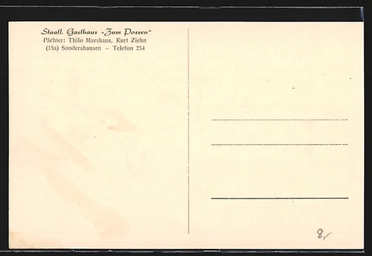 AK Sondershausen / Thüringen, Staatl. Gasthaus Zum Dossen, Inh. Thilo Marshaus