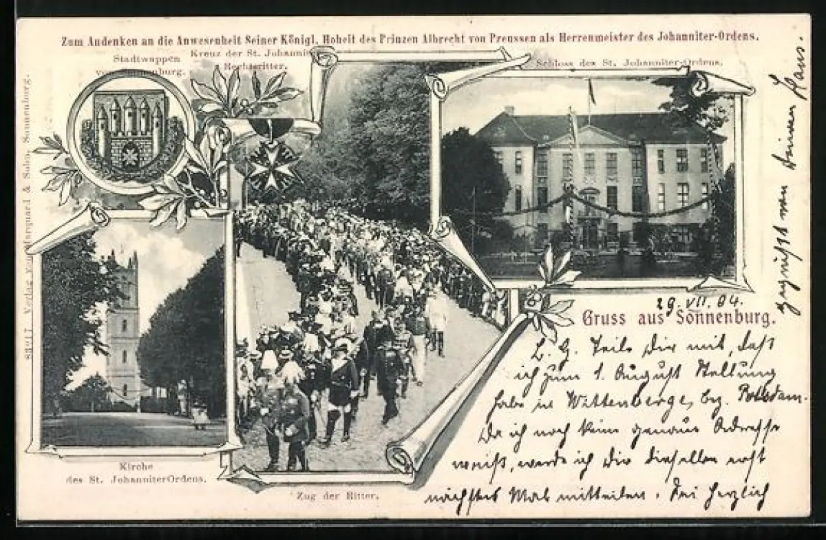 AK Sonnenburg, Zug der Ritter, Kirche des St. Johanniter-Ordens, Schloss des St. Johanniter-Ordens