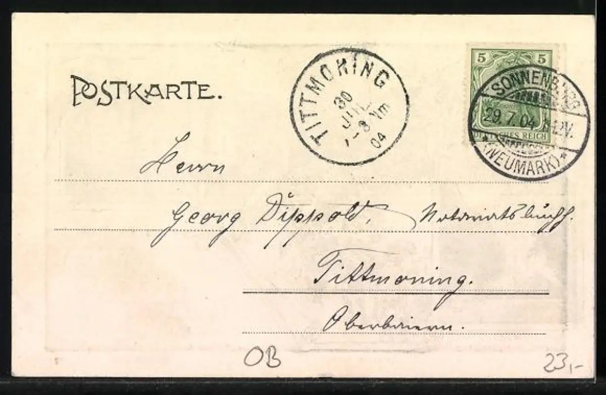 alte Ansichtskarte, gelaufen 1904, Eckknick re. oben, guter Zustand