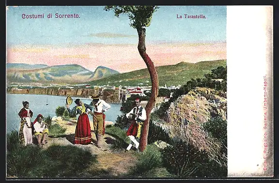AK Sorrento, Italiener in Volkstracht tanzen eine Tarantella