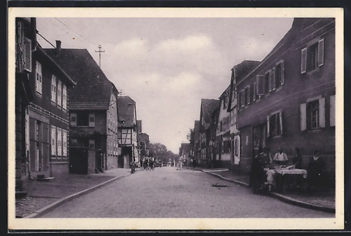 AK Soultz-sous-Forêts /Bas-Rhin, Rue Frohnacker avec maisons à colombages et passants