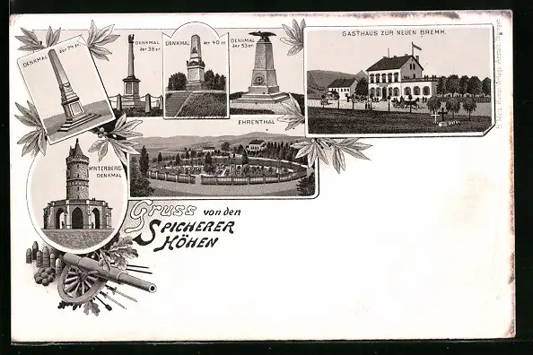 AK Spicherer Höhen, Denkmal der 74er, 39er, 40er, 53er, Gasthaus zur Neuen Bremm, Ehrenthal, Winterberg-Denkmal
