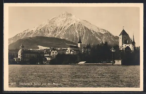 AK Spiez, Ortsansicht mit Niesen vom Thunersee aus