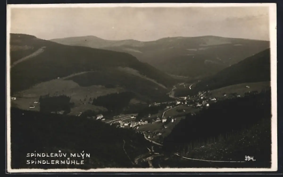 AK Spindelmühle /Riesengebirge, Gesamtansicht aus der Vogelschau