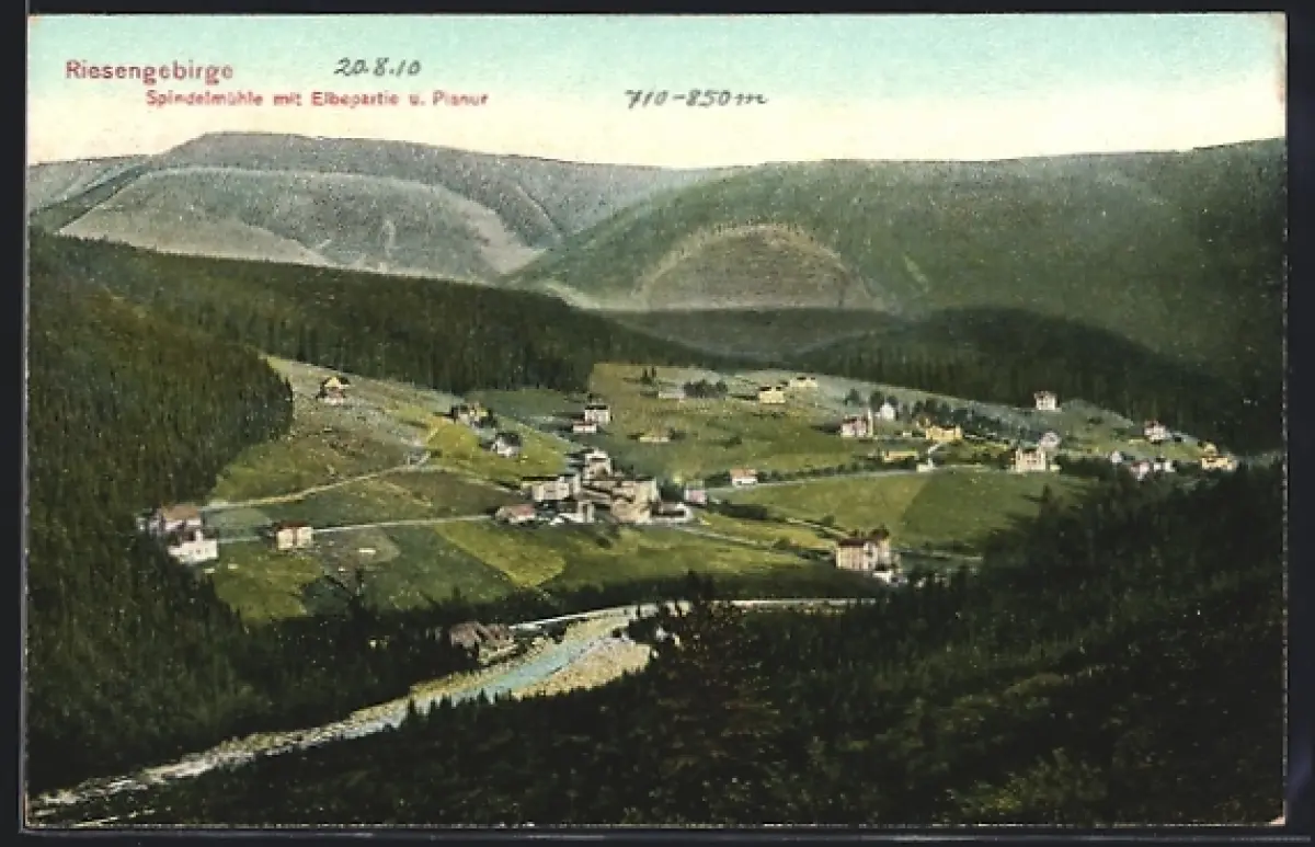 AK Spindelmühle /Riesengebirge, Ortsansicht mit Elbepartie und Planur