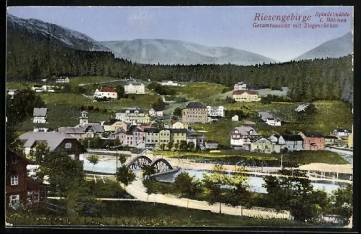 AK Spindelmühle i. Böhmen, Gesamtansicht mit Ziegenrücken, Riesengebirge