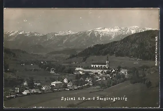 AK Spital a. P., Teilansicht mit Kirche und dem Sengsengebirge