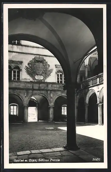 AK Spittal a. Drau, Innenhof im Schloss Porzia