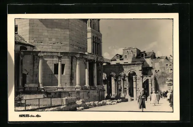 AK Split, Ortsansicht mit Säulen und Torbögen