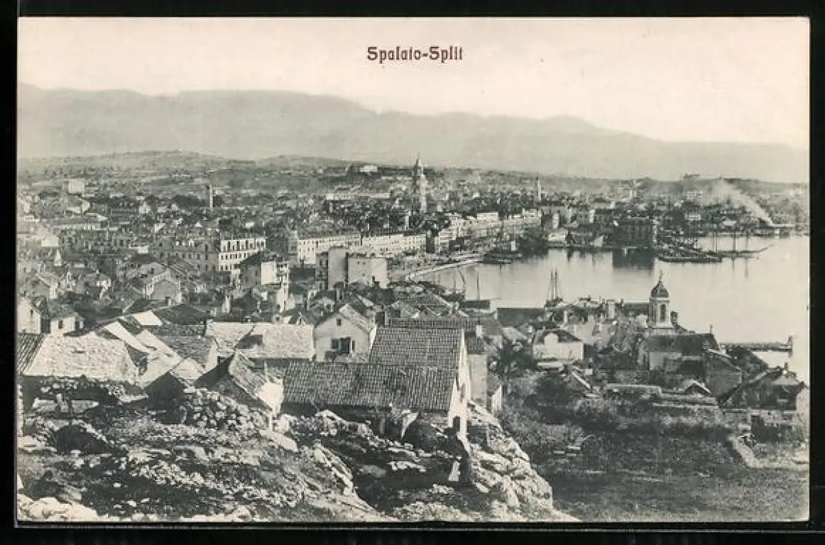 AK Split, Teilansicht mit Gebirgspanorama