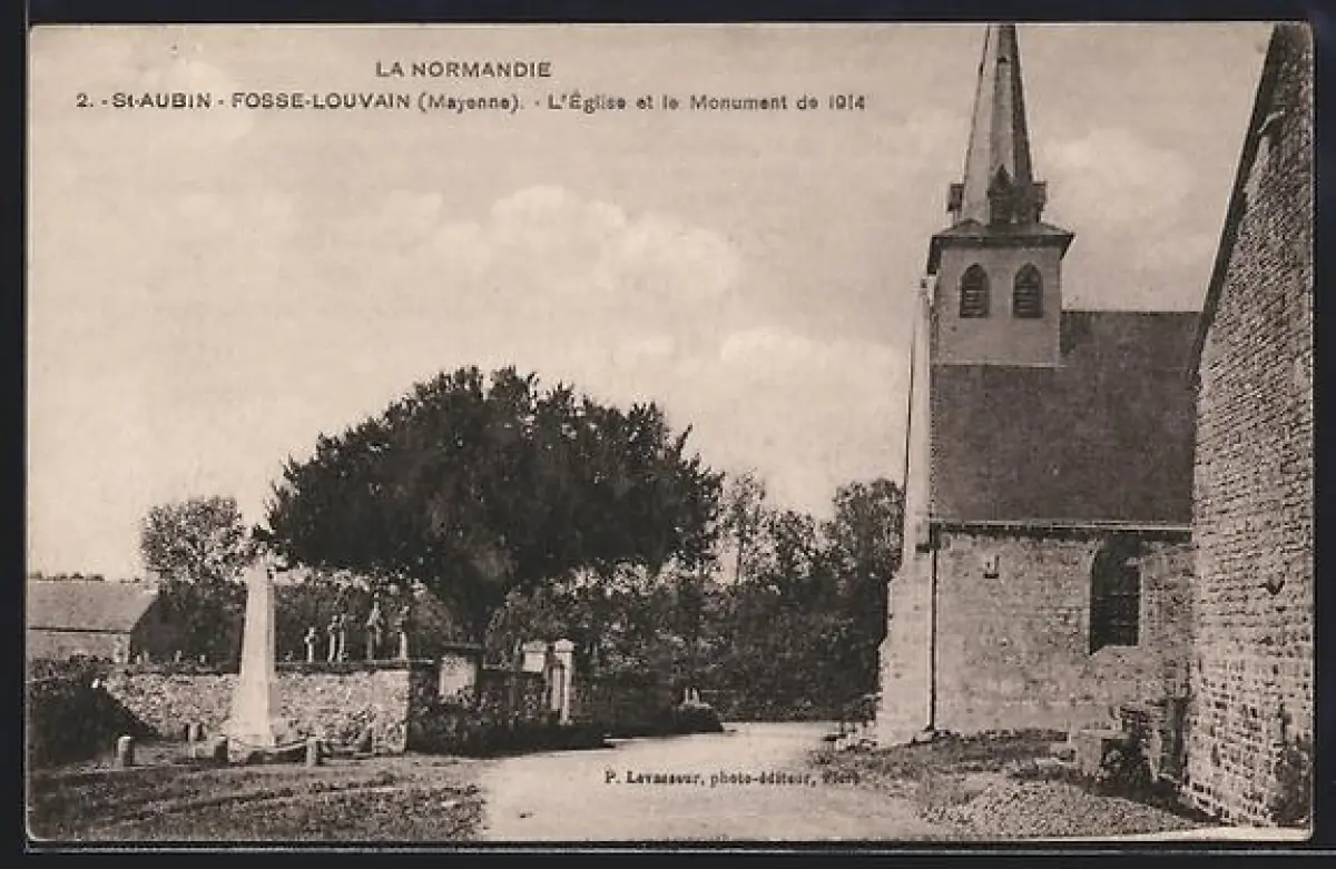 AK St-Aubin-Fosse-Louvain /Mayenne, L`Église et le Monument de 1914