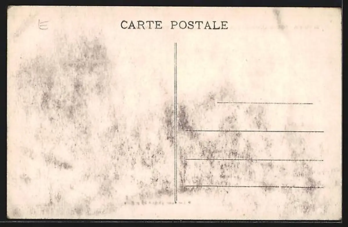 Personenbezogene Daten auf der Rückseite der Karte wurden durch blauen Textmarker unkenntlich gemacht. Die blauen Stellen sind auf die Vorderseite durchgeweicht und wirken sich negativ auf das Postkartenfoto aus