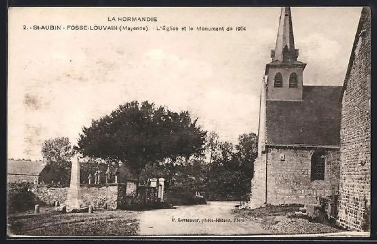 AK St-Aubin-Fosse-Louvain /Mayenne, L`Église et le Monument de 1914