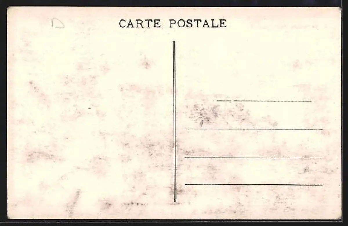 Personenbezogene Daten auf der Rückseite der Karte wurden durch blauen Textmarker unkenntlich gemacht. Die blauen Stellen sind auf die Vorderseite durchgeweicht und wirken sich negativ auf das Postkartenfoto aus